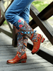 Vicconfy | Floral Tie-Accent Leather Vintage Knee High Boots